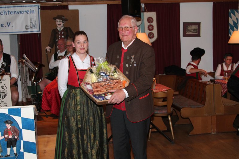 Carina bat noch Hans Ostner zu sich und überreichte Ihm einen Geschenkkorb für die vielen geleisteten Arbeitsstunden beim Bau des neuen Vereinsschrankes.